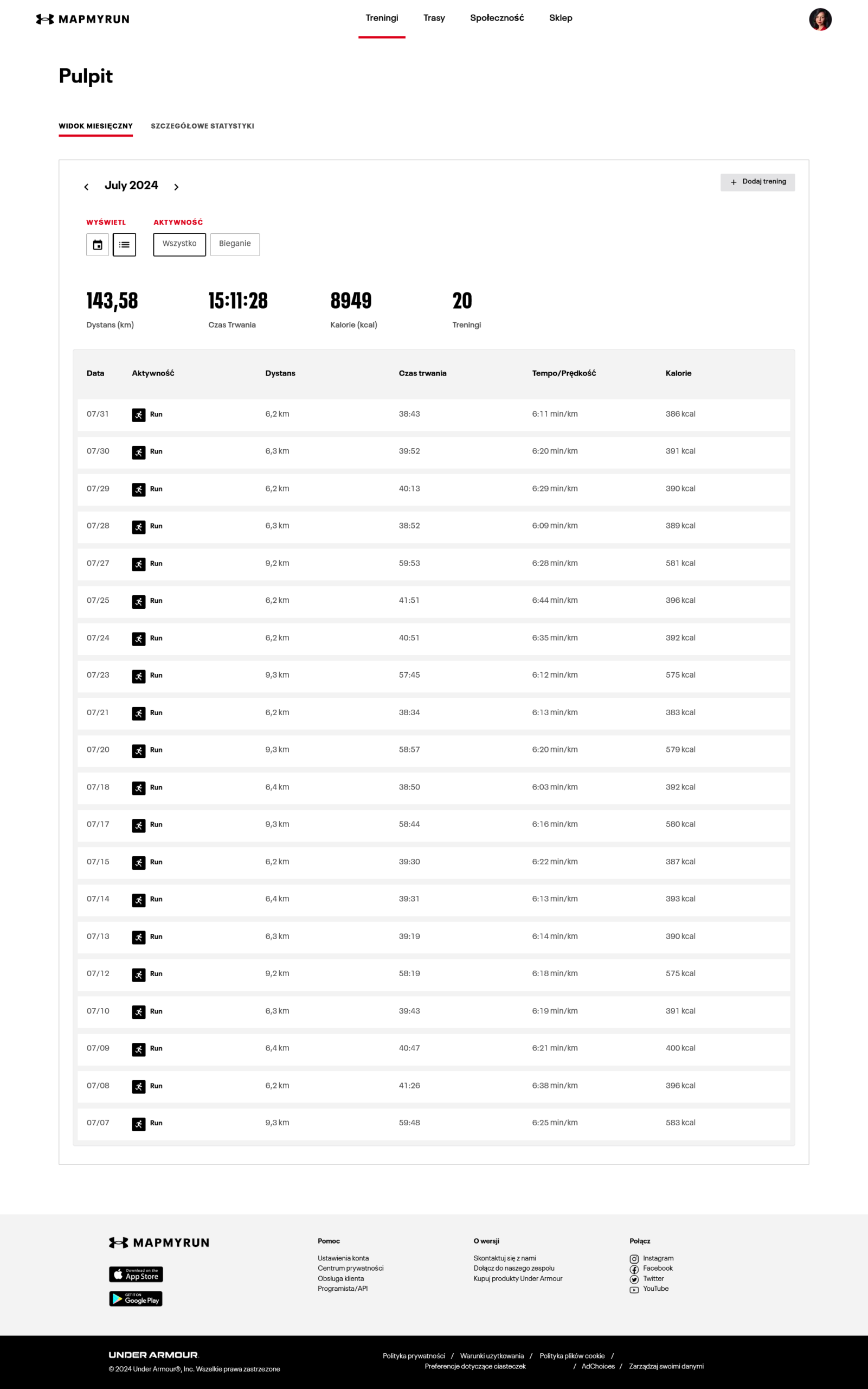 Każdy trening w Wyzwaniu musi być zarejestrowany przez aplikację MapMyRun i/lub Strava (nie trzeba korzystać z płatnej wersji aplikacji).